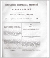 Вологодские губернские ведомости. Газета. 1854 год, Официальная часть: №31