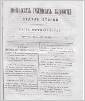 Вологодские губернские ведомости - это периодическое издание, издававшееся с 1838 по 1917 гг.