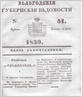 Вологодские губернские ведомости. Газета. 1839 год, Официальная часть: №51