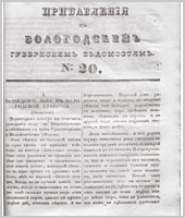 Вологодские губернские ведомости - это периодическое издание, издававшееся с 1838 по 1917 гг.