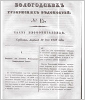 Вологодские губернские ведомости - это периодическое издание, издававшееся с 1838 по 1917 гг.