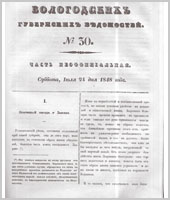 Вологодские губернские ведомости - это периодическое издание, издававшееся с 1838 по 1917 гг.