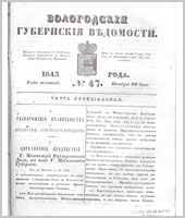 Вологодские губернские ведомости. Газета. 1843 год, Официальная часть: №47