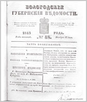 Вологодские губернские ведомости - это периодическое издание, издававшееся с 1838 по 1917 гг.