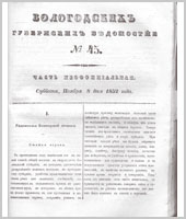 Вологодские губернские ведомости - это периодическое издание, издававшееся с 1838 по 1917 гг.