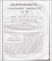 Вологодские губернские ведомости - это периодическое издание, издававшееся с 1838 по 1917 гг.