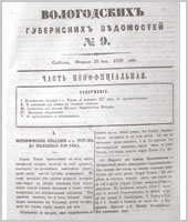 Вологодские губернские ведомости - это периодическое издание, издававшееся с 1838 по 1917 гг.