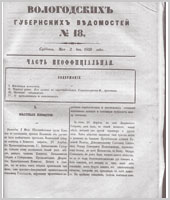 Вологодские губернские ведомости - это периодическое издание, издававшееся с 1838 по 1917 гг.