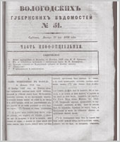 Вологодские губернские ведомости - это периодическое издание, издававшееся с 1838 по 1917 гг.