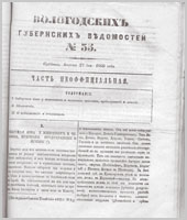 Вологодские губернские ведомости - это периодическое издание, издававшееся с 1838 по 1917 гг.