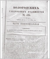 Вологодские губернские ведомости - это периодическое издание, издававшееся с 1838 по 1917 гг.