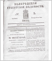 Вологодские губернские ведомости. Газета. 1844 год, Официальная часть: №2