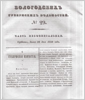 Вологодские губернские ведомости - это периодическое издание, издававшееся с 1838 по 1917 гг.