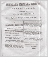 Вологодские губернские ведомости. Газета. 1850 год, Официальная часть: №2