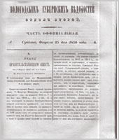 Вологодские губернские ведомости. Газета. 1850 год, Официальная часть: №8