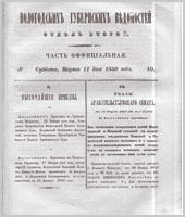 Вологодские губернские ведомости. Газета. 1850 год, Официальная часть: №10