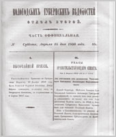 Вологодские губернские ведомости. Газета. 1850 год, Официальная часть: №15