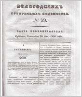 Вологодские губернские ведомости - это периодическое издание, издававшееся с 1838 по 1917 гг.