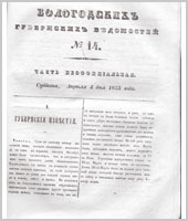 Вологодские губернские ведомости - это периодическое издание, издававшееся с 1838 по 1917 гг.