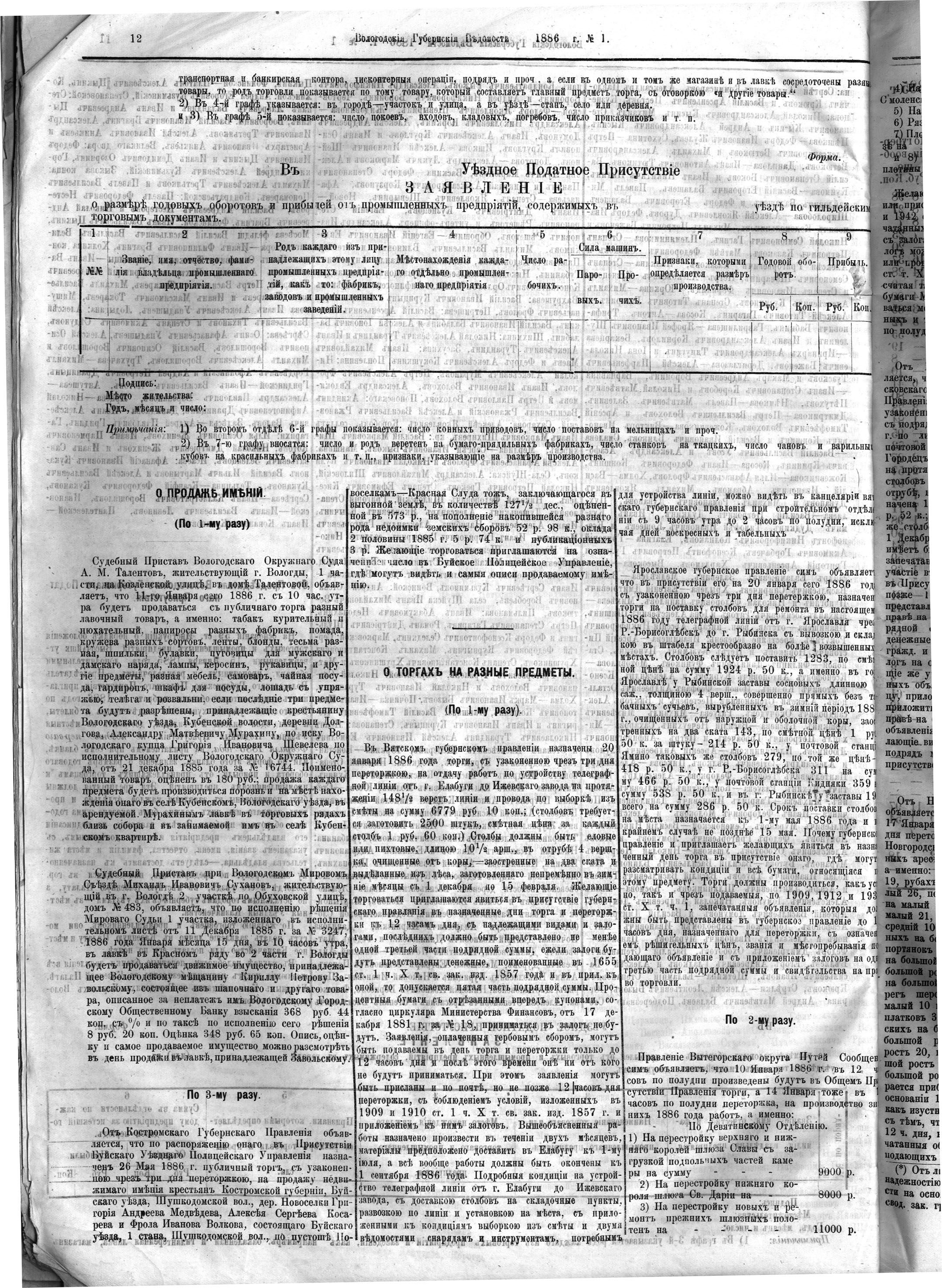 Вологодские губернские ведомости. Газета. 1886 год, №1 страница 11