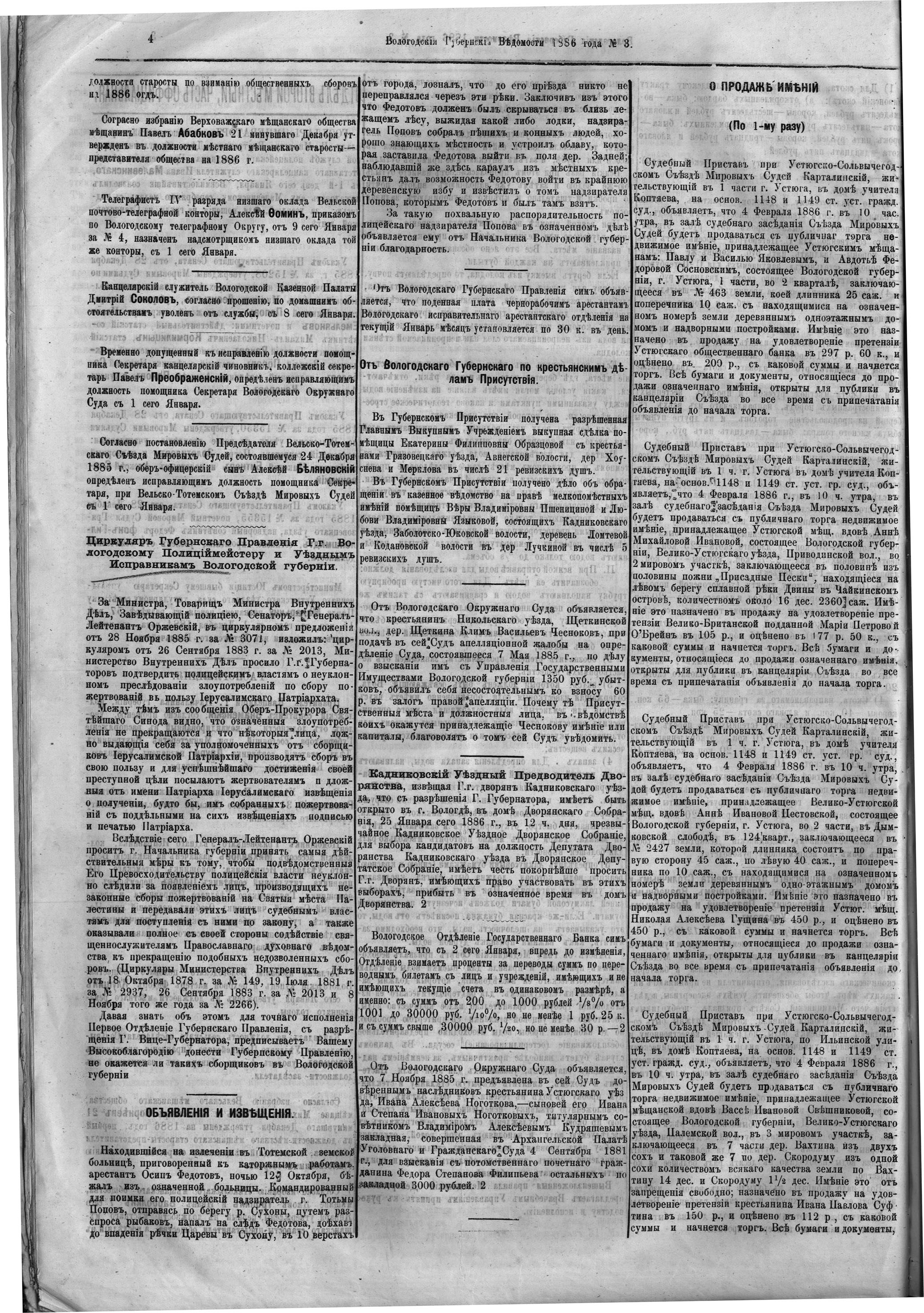 Вологодские губернские ведомости. Газета. 1886 год, №3 страница 3