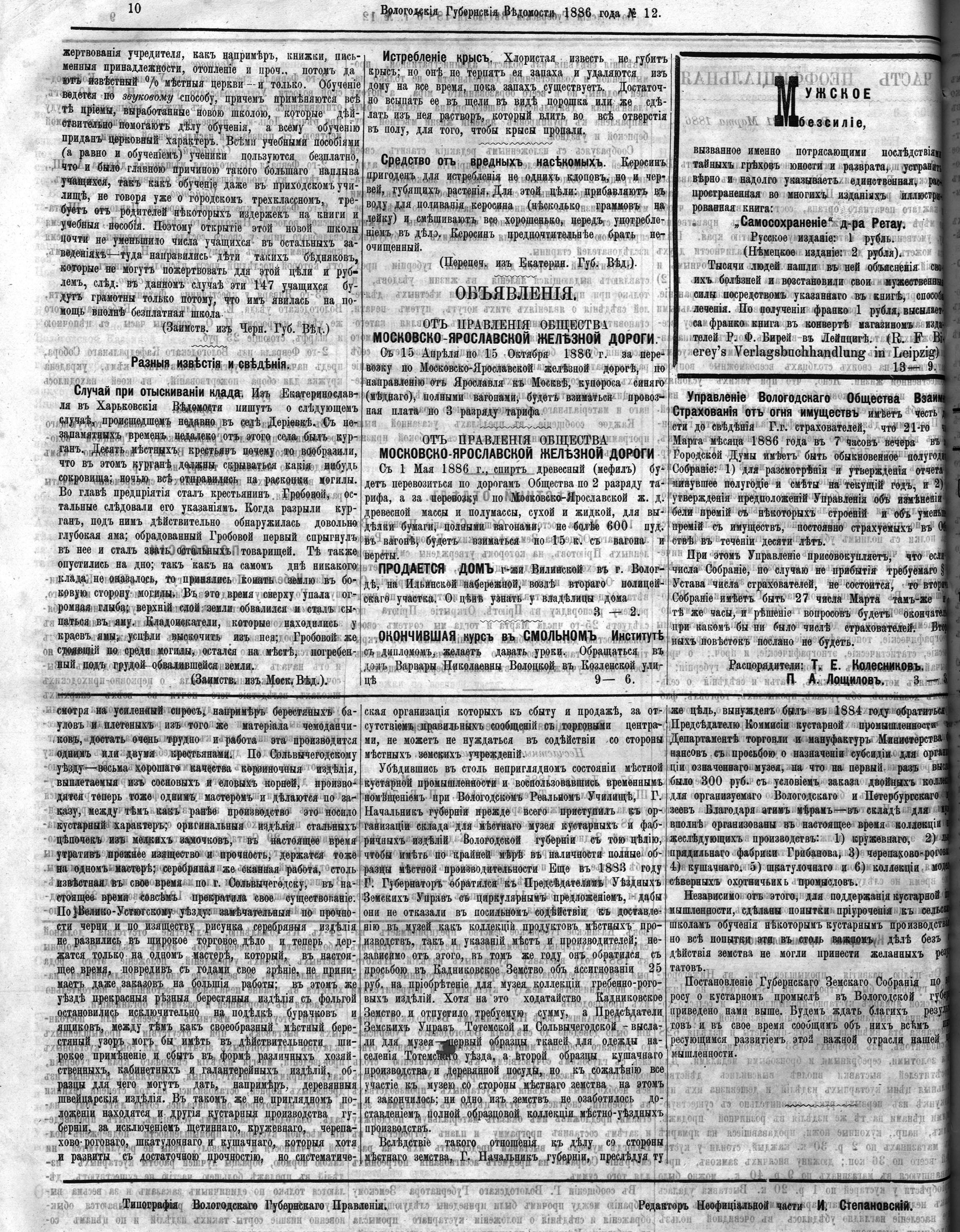 Вологодские губернские ведомости. Газета. 1886 год, №12 страница 9