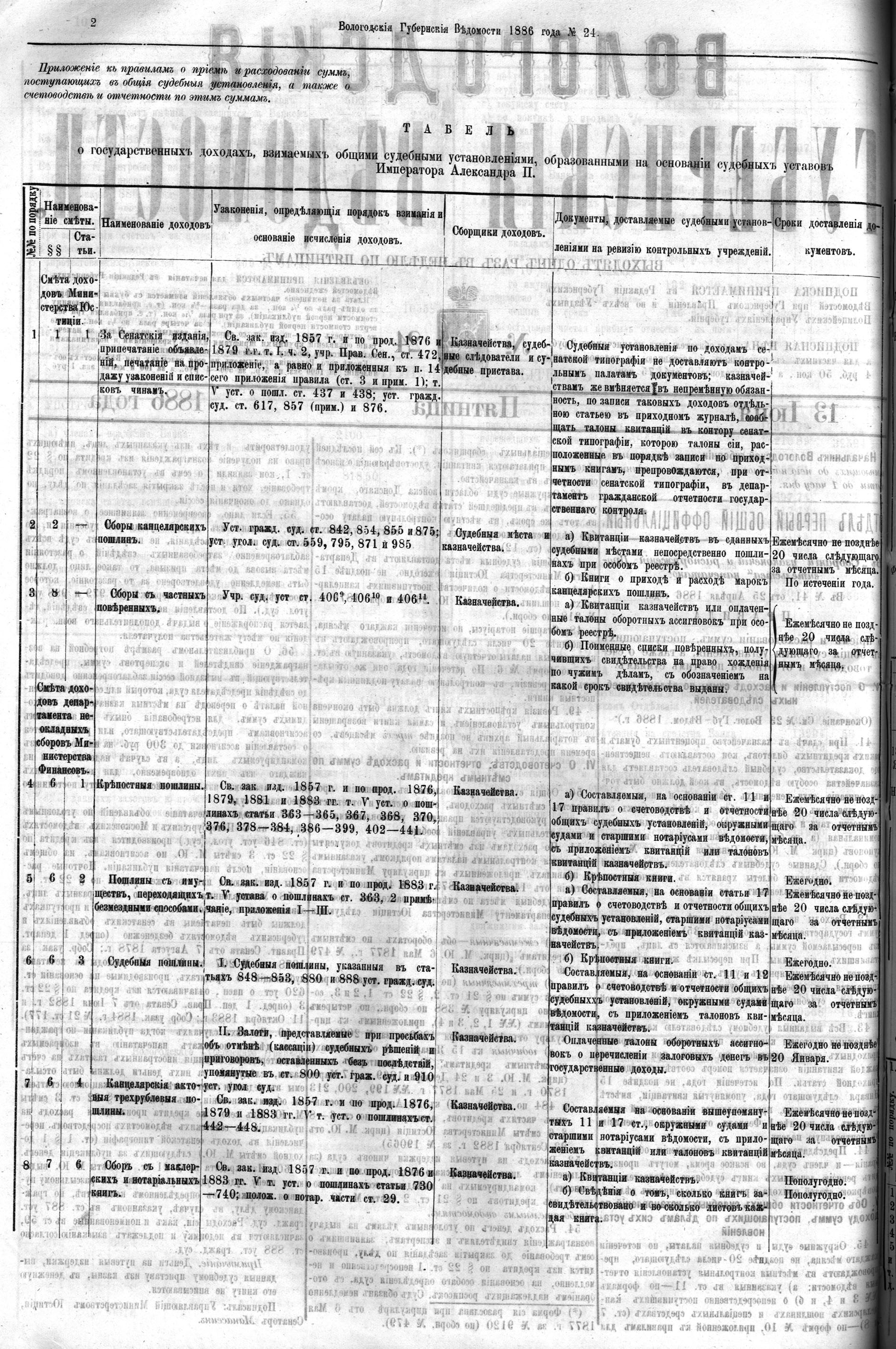 Вологодские губернские ведомости. Газета. 1886 год, №24 страница 1