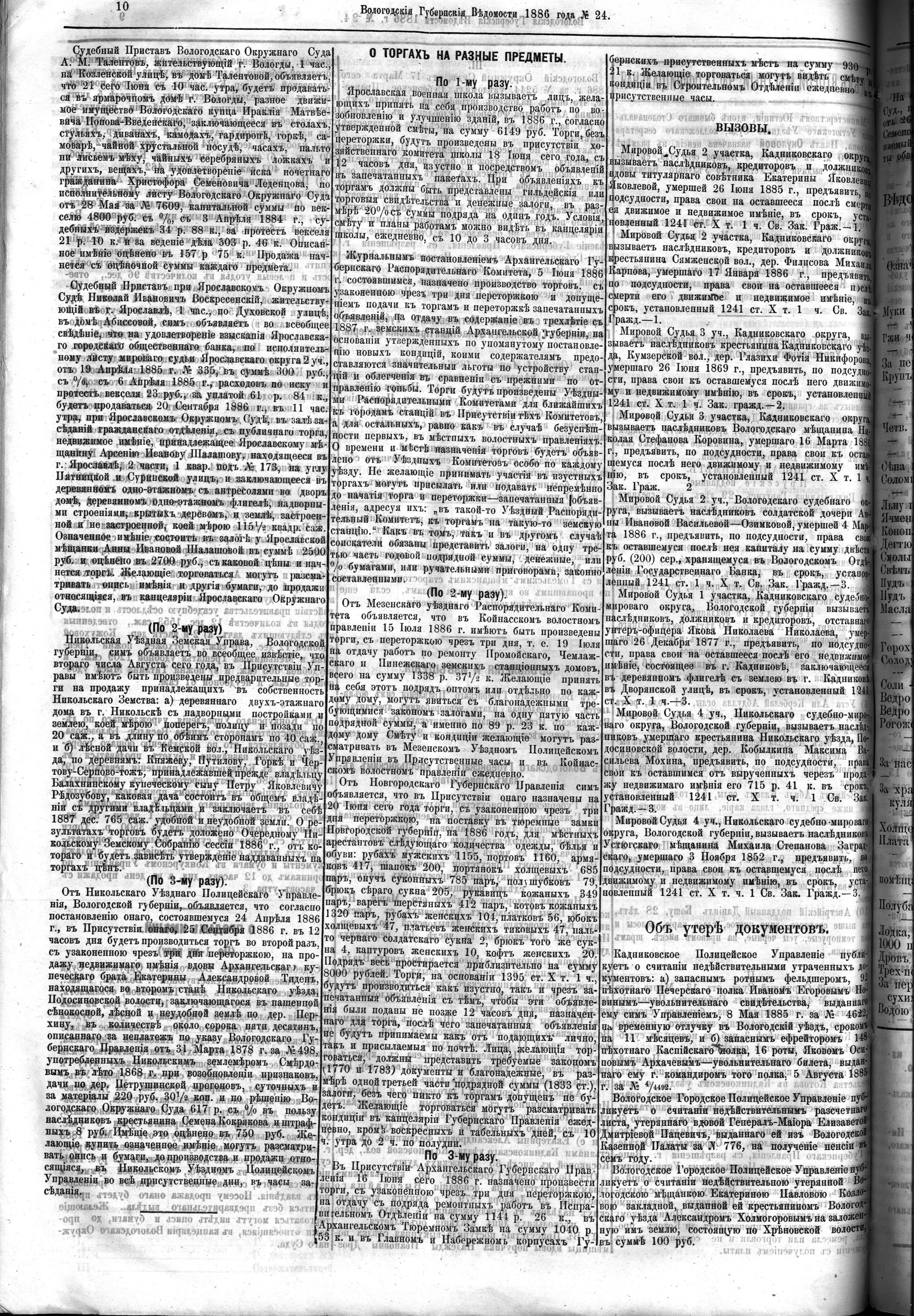 Вологодские губернские ведомости. Газета. 1886 год, №24 страница 9