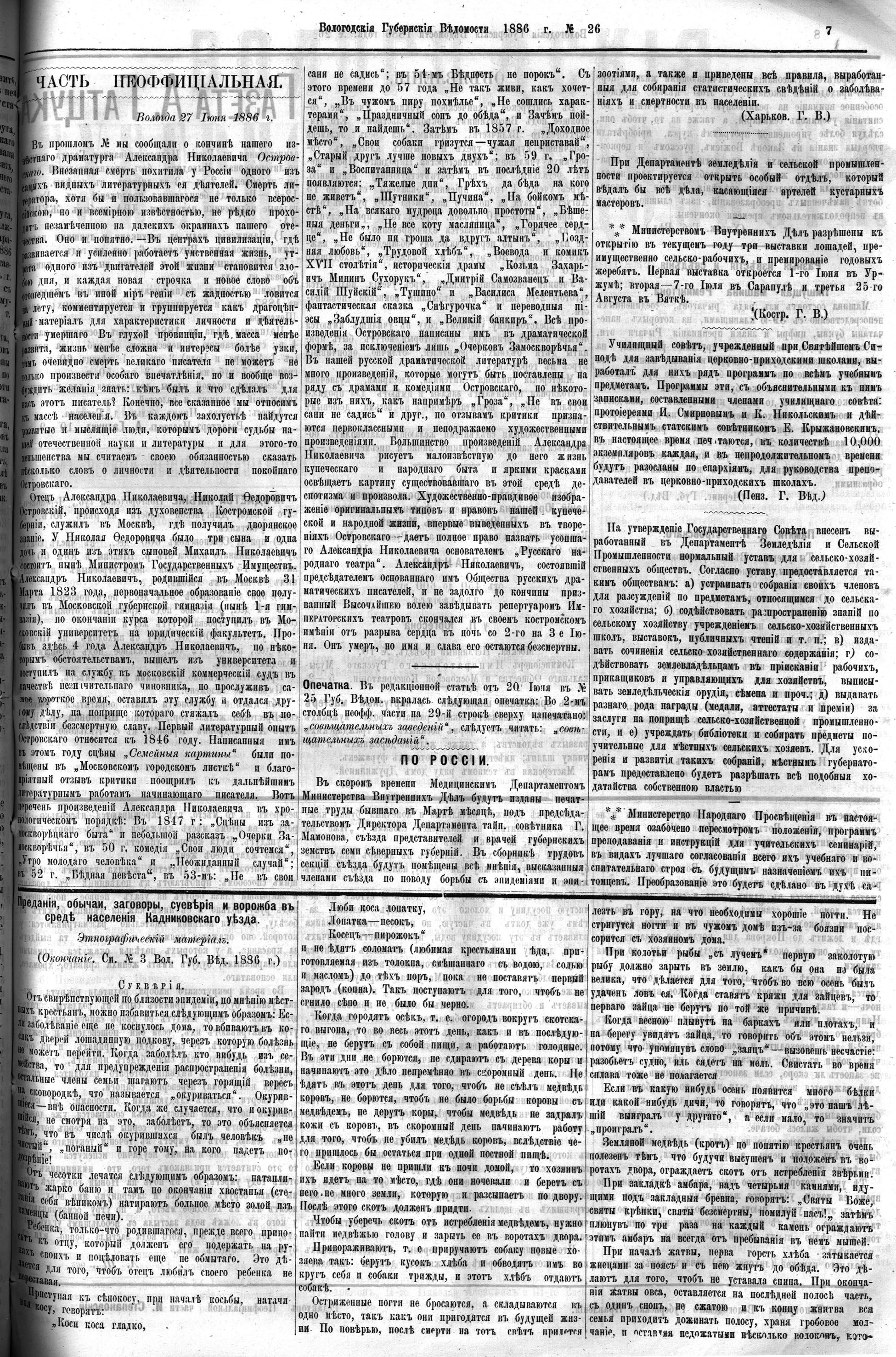 Вологодские губернские ведомости. Газета. 1886 год, №26 страница 6