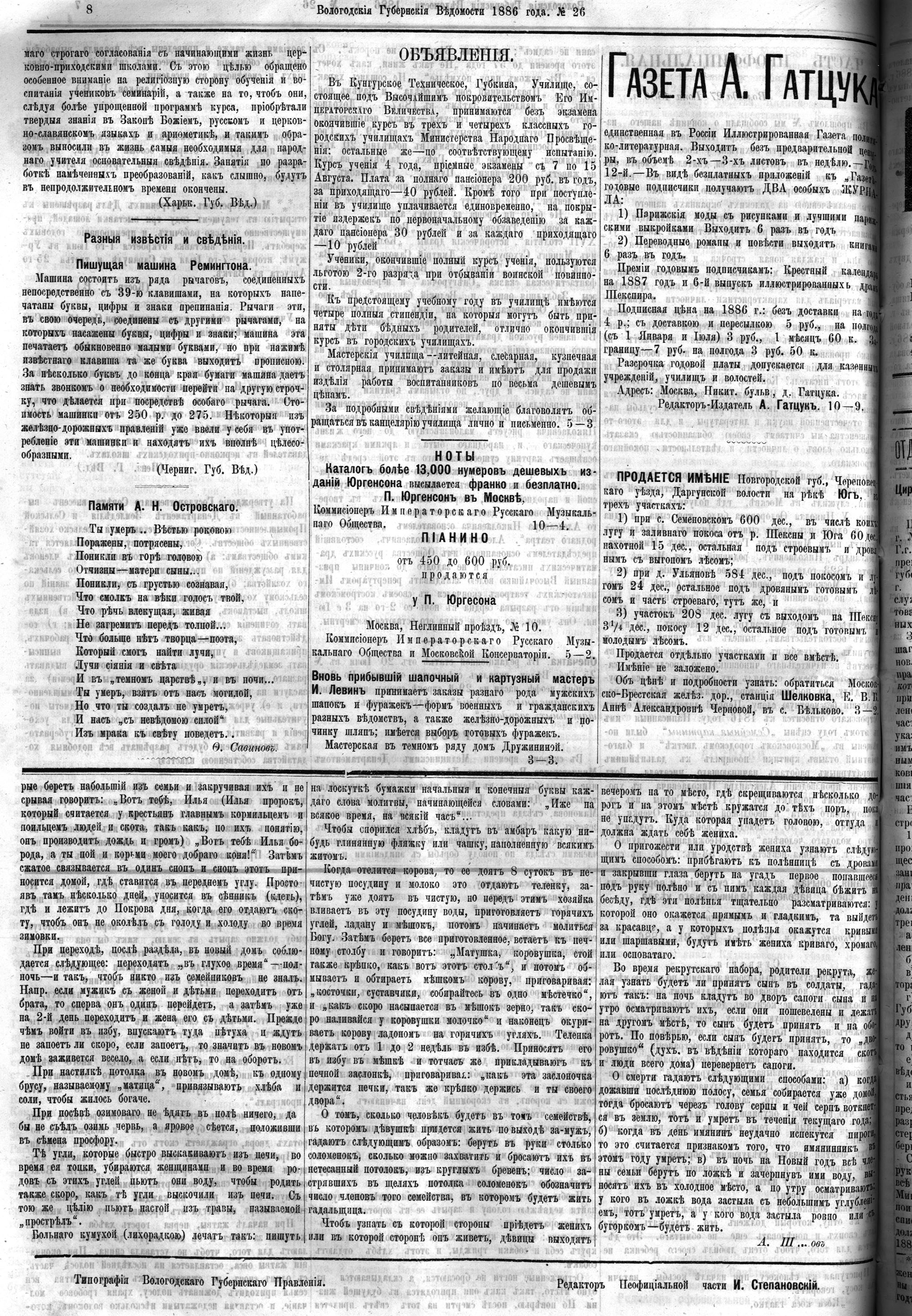 Вологодские губернские ведомости. Газета. 1886 год, №26 страница 7