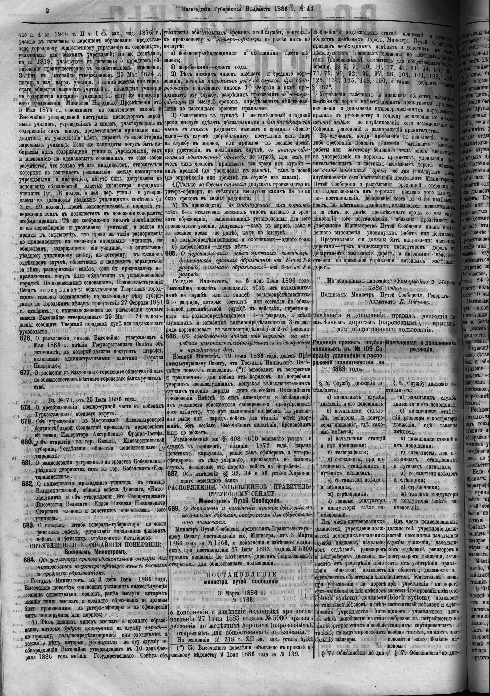Вологодские губернские ведомости. Газета. 1886 год, №44 страница 1