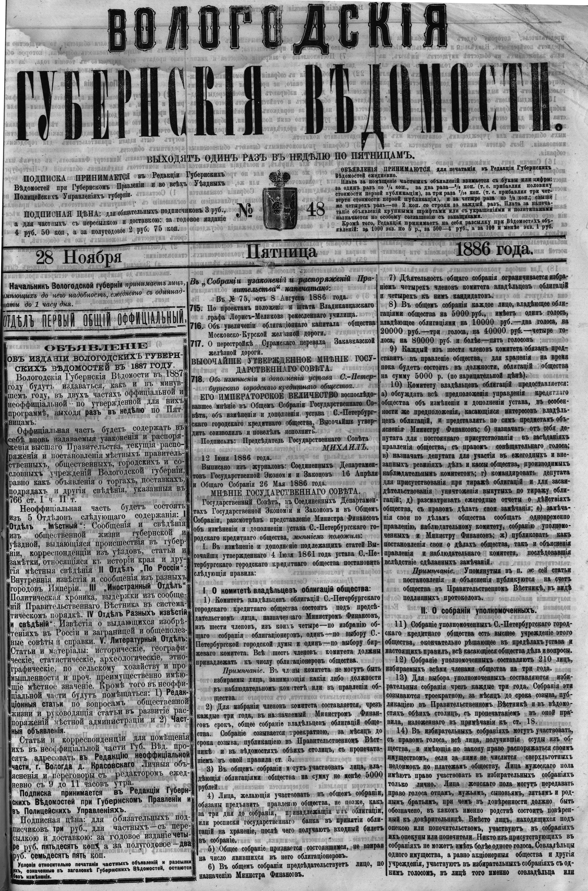 Вологодские губернские ведомости. Газета. 1886 год, №48 страница 0