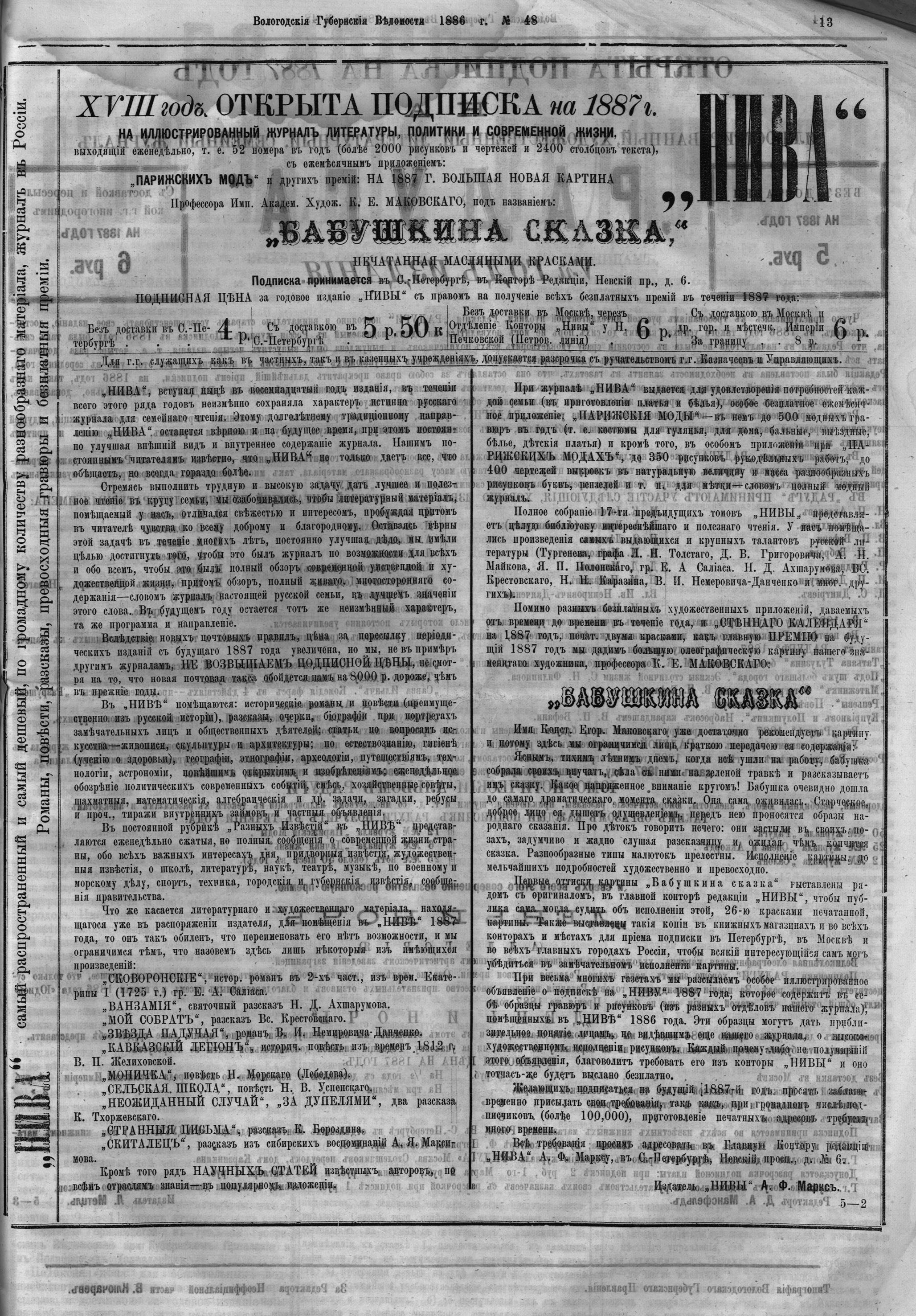 Вологодские губернские ведомости. Газета. 1886 год, №48 страница 12
