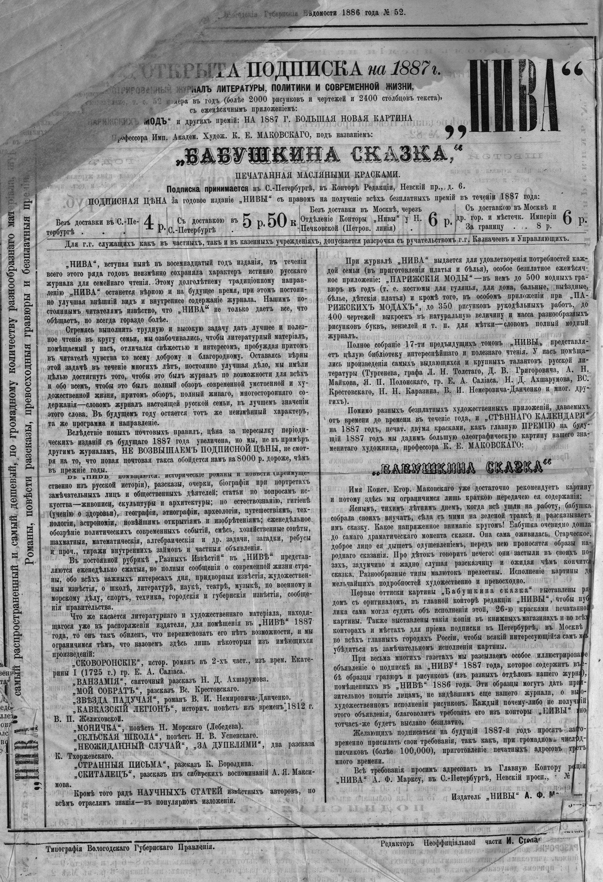 Вологодские губернские ведомости - это периодическое издание, издававшееся с 1838 по 1917 гг.