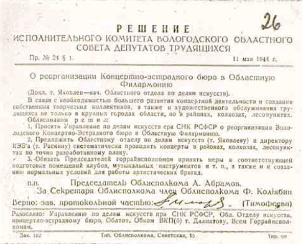 Артисты филармонии в колхозах // Красный Север. – Вологда, 1944. – 27 августа (№ 170). – С. 1.