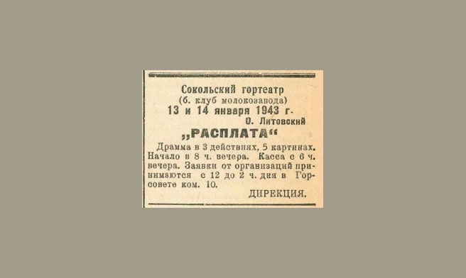 Отзыв воинов о концерте артистов Вологодского облдрамтеатра. 1945 г.