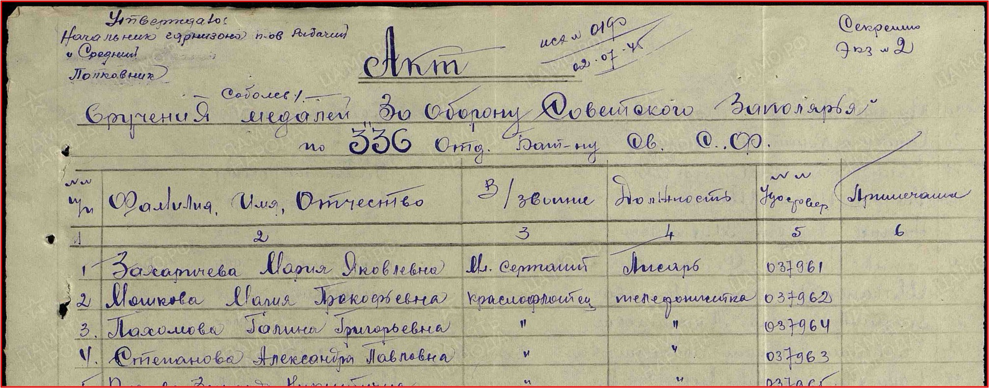 Как комсомолку и человека со средним образованием Галину Григорьевну девятнадцатилетней девчонкой призвали в армию. Она была мобилизована Усть-Алексеевским райвоенкоматом 14 августа 1942 г. К этому времени на фронте уже воевали ее отец и брат.