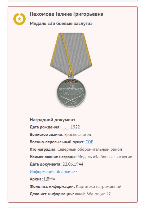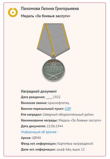 Пахомова Галина Григорьевна на сайте «Память народа»