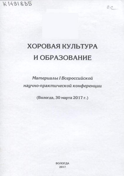 Актуальные проблемы музыкального образования и этномузыкологии : материалы I Всероссийской заочной научно-практической конференции (Вологда, 20 мая 2016 г.) / М-во образования и науки Рос. Федерации, Вологод. гос. ун-т ; [редкол.: Т. П. Брова (отв. ред.) и др.]. – Вологда : ВоГУ, 2017. – 107 с. : карт., табл. – Библиогр. в конце ст. и в подстроч. примеч. – ISBN 978-5-87851-728-7.
