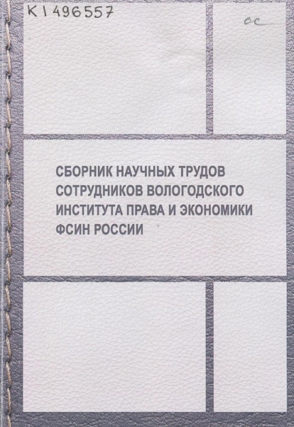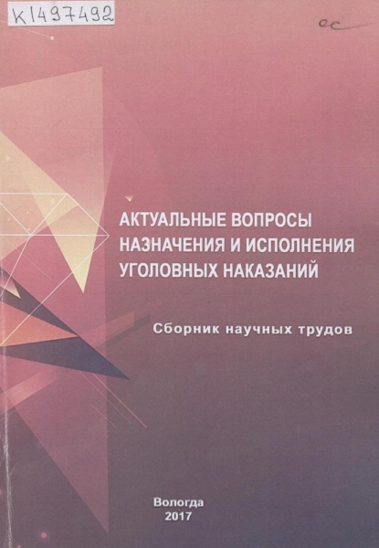 Актуальные вопросы назначения и исполнения уголовных наказаний : сборник научных трудов / под общ. ред. В. Н. Некрасова ; Федер. служба исполн. наказаний, Вологод. ин-т права и экономики. – Вологда : ВИПЭ ФСИН России, 2017. – 257 с. : табл. – Библиогр. в конце ст. и в подстроч. примеч. – ISBN 978-5-94991-413-7.