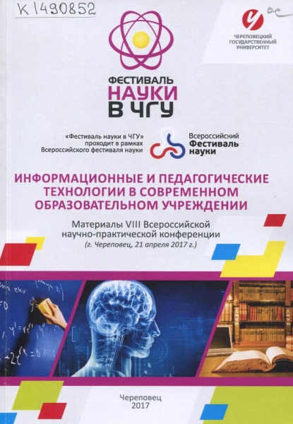 Череповецкие научные чтения – 2016 : материалы Всероссийской научно-практической конференции (16-17 ноября 2016 г.). [В 3 ч.] Ч. 2. Педагогика, психология, методика преподавания, теория и методика физической культуры / Череповец. гос. ун-т, Упр. аспирантуры, докторантуры и науч. деятельности ; [отв. ред. Е. В. Целикова]. – Череповец : ЧГУ, 2017. – 161 с. : ил., табл. – Библиогр. в конце ст. – ISBN 978-5-85341-736-6. – ISBN 978-5-85341-736-6.