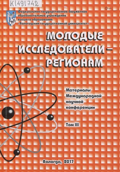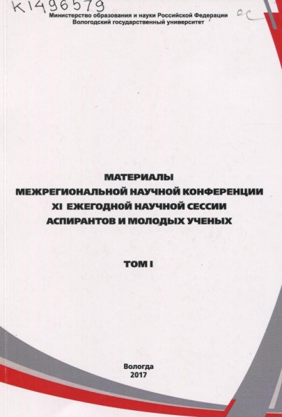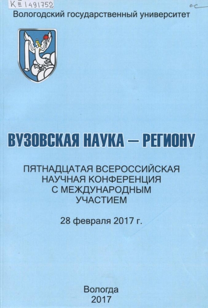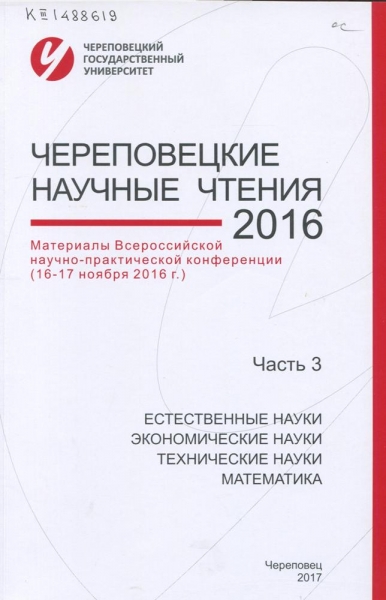 Череповецкие научные чтения – 2016 : материалы Всероссийской научно-практической конференции (г. Череповец, 16-17 ноября 2016 г.). [В 3 ч.] Ч. 3. Естественные, экономические, технические науки и математика / Череповец. гос. ун-т, Упр. аспирантуры, докторантуры и науч. деятельности ; [редкол.: К. А. Харахнин (отв. ред.) и др.]. – Череповец : ЧГУ, 2017. – 213 с. : ил., табл. – Библиогр. в конце ст. – ISBN 978-5-85341-738-0. – ISBN 978-5-85341-734-2.