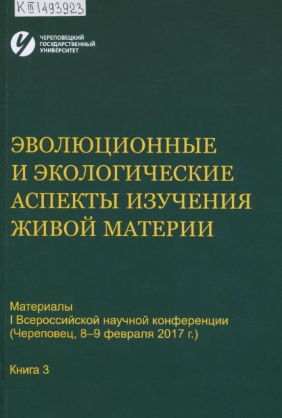 Эволюционные и экологические аспекты изучения живой материи : материалы I Всероссийской научной конференции (Череповец, 8-9 февраля 2017 г.), [посвященной памяти Н. П. Коломийцева и 20-летию образования кафедры биологии Череповецкого гос. ун-та : в 4 кн.]. Кн. 1 / Череповец. гос. ун-т ; [отв. ред. Н. Я. Поддубная]. – Череповец : ЧГУ, 2017. – 161 с. : ил. – Рез. на англ. яз. – ISBN 978-5-85341-747-2. – ISBN 978-5-85341-748-9.