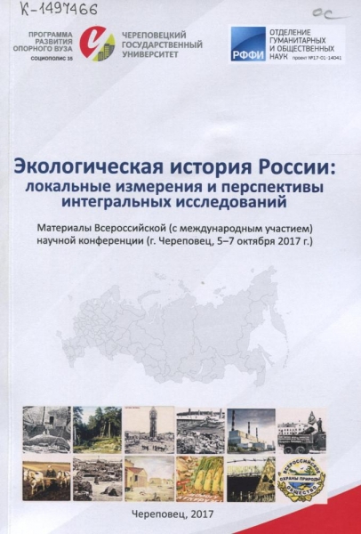 Экологическая история России: локальные изменения и перспективы интегральных исследований : материалы Всероссийской (с международным участием) научной конференции (г. Череповец, 5-7 октября 2017 г.) / Череповец. гос. ун-т [ и др. ; отв. ред. О. Ю. Солодянкина]. – Череповец : ЧГУ, 2017. – 275 с. : табл. – Текст рус., англ. – Библиогр. в конце ст. – ISBN 978-5-85341-780-9.