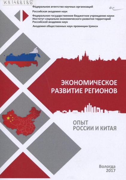 Экономическое развитие регионов: опыт России и Китая : [монография / В. А. Ильин и др.; под науч. рук. В. А. Ильина и др.]. – Вологда : ИСЭРТ РАН, 2017. – 400 с. – В надзаг.: Федер. агенство науч. орг., Рос. акад. наук, Ин-т соц.-эконом. развития территорий Рос. акад. наук, Акад. обществ. наук провинции Цзенси. – Ч. текста.: англ. яз. – Библиогр. в конце ст. и в подстроч. примеч. – ISBN 978-5-93299-367-5.