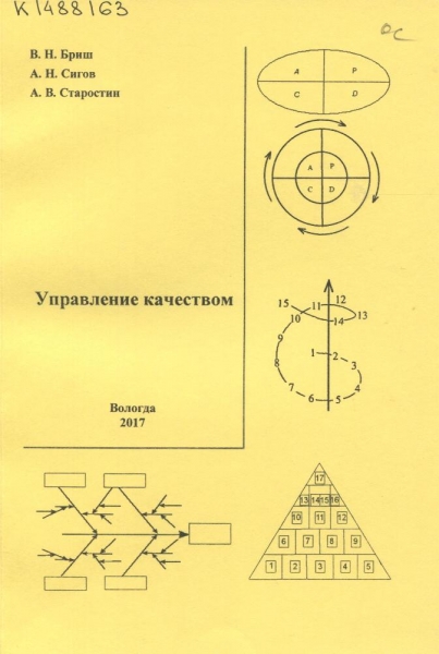Бриш, В. Н. Управление качеством : учебное пособие / В. Н. Бриш, А. Н. Сигов, А. В. Старостин ; М-во образования и науки Рос. Федерации, Вологод. гос. ун-т. – Вологда : ВоГУ, 2017. – 139 с. : ил. – Библиогр.: с. 126-127 (32 назв.). – ISBN 978-5-87851-721-8.