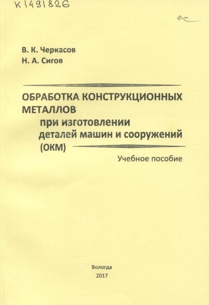 Черкасов, В. К. Обработка конструкционных металлов при изготовлении деталей машин и сооружений (ОКМ) : учебное пособие / В. К. Черкасов, Н. А. Сигов ; М-во образования и науки Рос. Федерации, Вологод. гос. ун-т. – Вологда : ВоГУ, 2017. – 130 с. : ил., черт. – Библиогр.: с. 129-130 ( 17 назв.). – ISBN 978-5-87851-754-6.