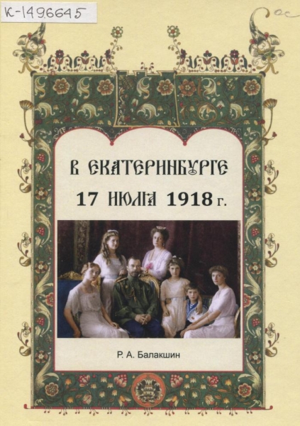 Балакшин Р. А. В Екатеринбурге 17 июля 1918 г. : поэма / Р. А. Балакшин ; [ред. А. А. Цыганов]. – Вологда : Сад-огород, 2018. – 57, [3] с. : ил., портр. – Библиогр.: с. 60 (11 назв.). – 12+. – ISBN 978-5-906850-93-5.