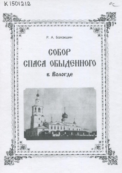 Балакшин Р. А. Собор Спаса Обыденного в Вологде : историко-краеведческий очерк к 365-летию со дня постройки / Р. А. Балакшин. – Вологда : Сад-огород, 2018. – 48, [3] с. : ил., цв. ил. – 12+. – ISBN 978-5-906850-79-9.