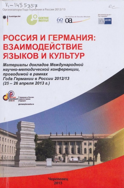 Studia Germanica. Актуальные аспекты исследования немецкого языка : сборник научных трудов, посвященных 65-летнему юбилею кафедры немецкого языка ВГПУ / Вологод. гос. пед. ун-т ; [ред.: Е. В. Разова, О. М. Чернышева]. - Вологда : ВГПУ, 2013. - 103, [1] с. : портр. - ISBN 978-5-87822-513-7